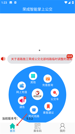 2、首頁含網上充值、公交查詢等服務入口,可查看線路調整通知等公告,是本地公交服務的綜合入口。