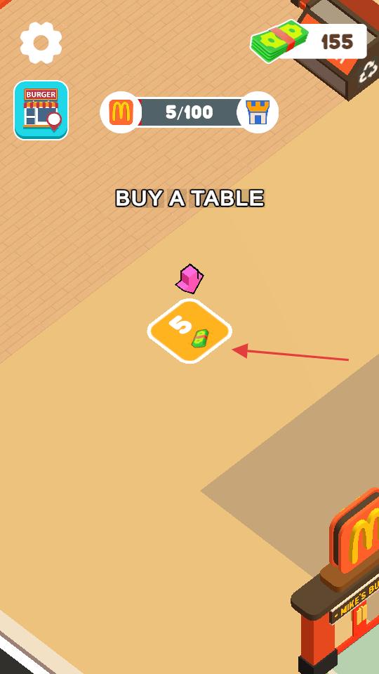 2、資金足夠時,點擊【買桌子】提示區域,購置經營設施,拓展餐廳運營能力,提升顧客接待效率。