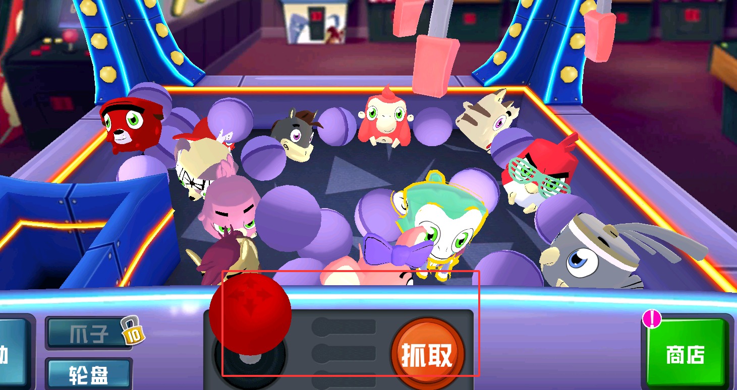 2、通過虛擬搖桿操控抓爪移動方向,看準時機按下按鈕抓取場景中的目標玩偶。