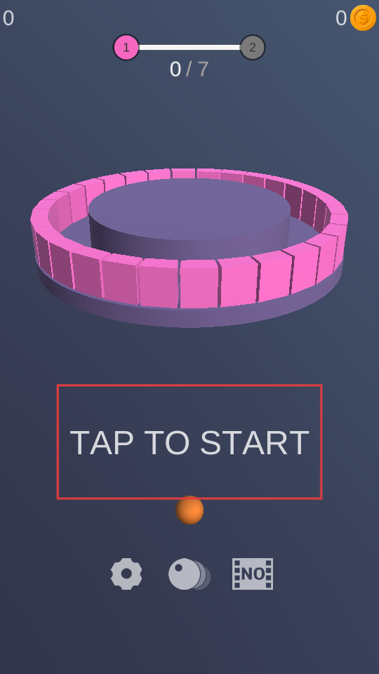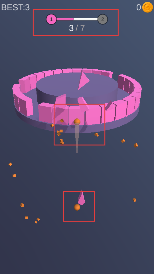 1、點擊TAP TO START開始游戲,操控橙色球體,目標是破壞粉色環形結構,界面顯示關卡進度,需完成指定破壞任務。
