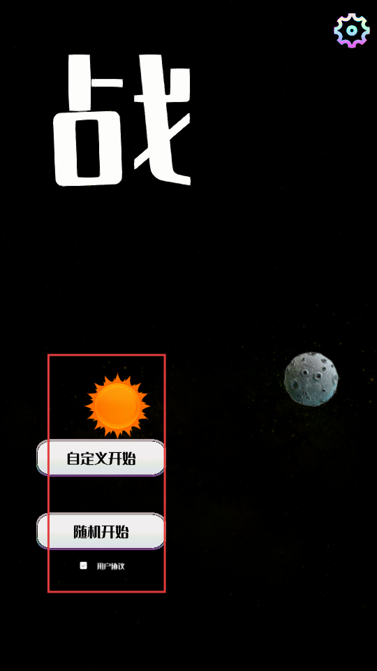 1、在界面下方你可以看到自定義開始和隨機開始兩個選項,點擊自定義開始能按自己的策略設置游戲初始條件,點擊隨機開始則由系統隨機生成游戲開局。