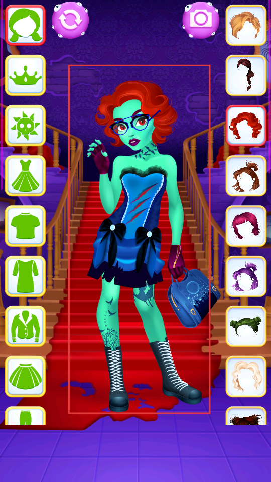 4、個性化背景:配備4種特色場景,從墓地到暗夜城堡,完美襯托僵尸女孩的個性裝扮。背景支持動態特效調節,營造沉浸式裝扮體驗。
