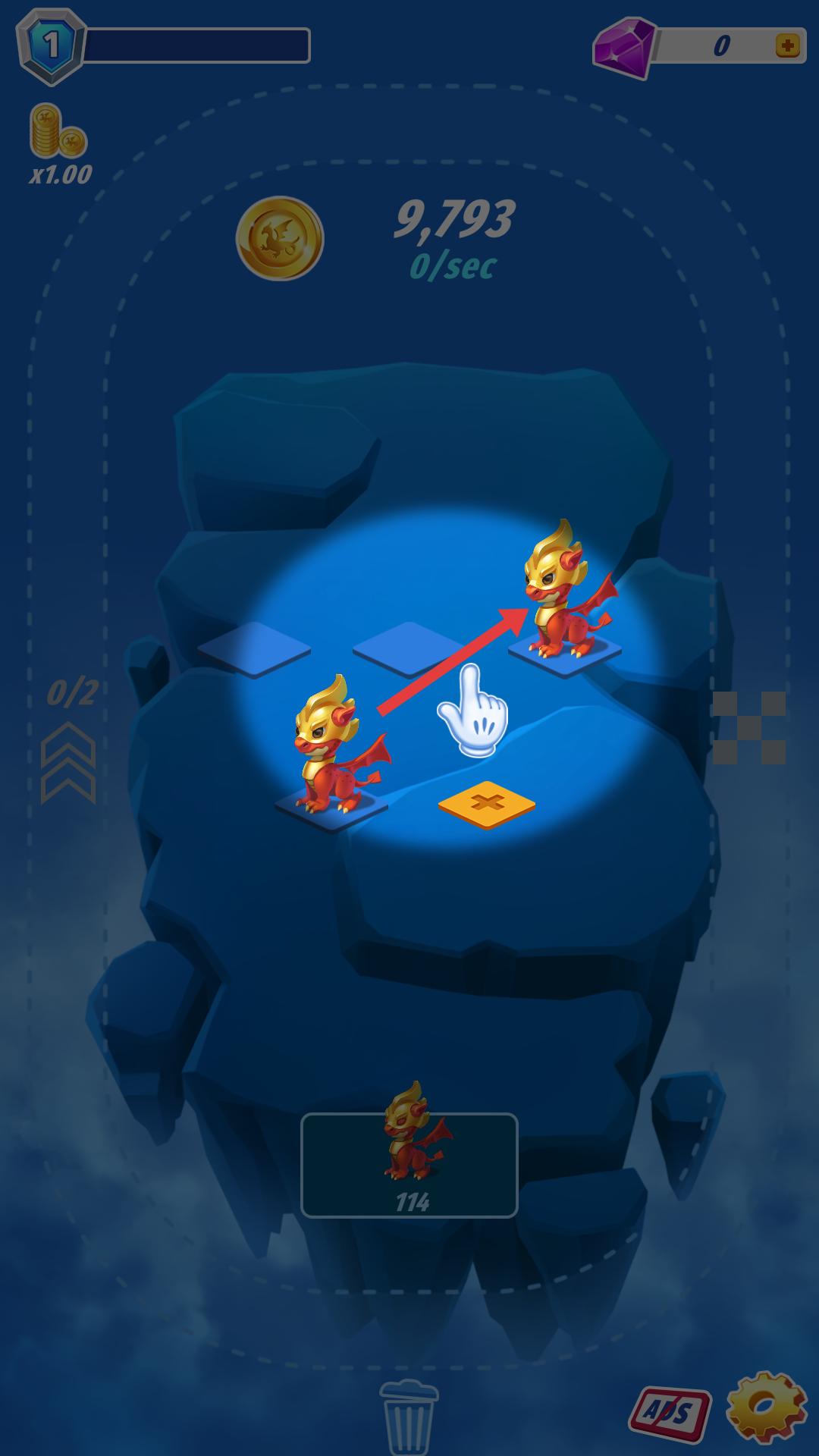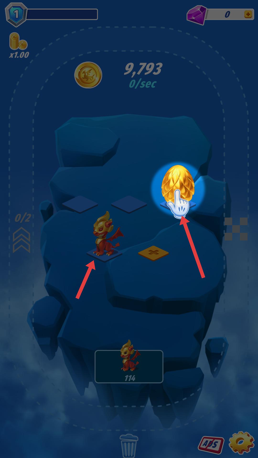 1、基礎合成操作:通過拖拽相同星級的相鄰龍種進行合并,成功生成高一級新龍種并清出場地空間,連續合成觸發暴擊獲得雙倍產物。