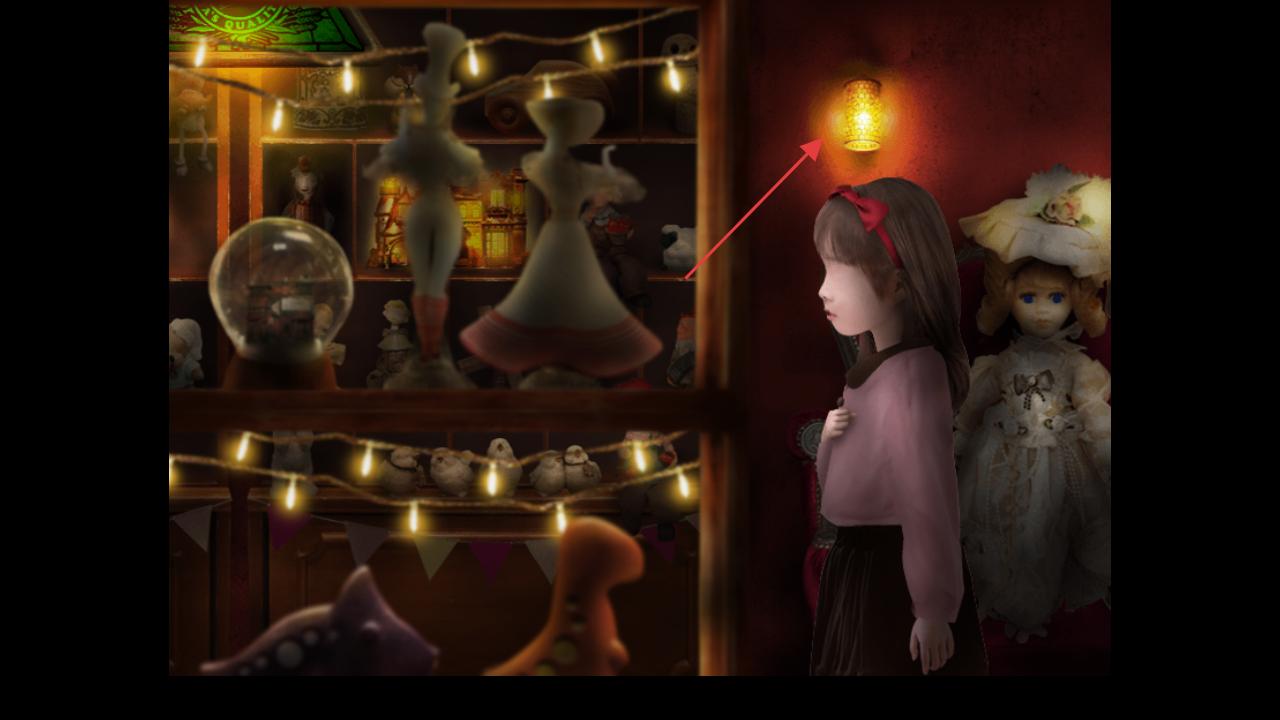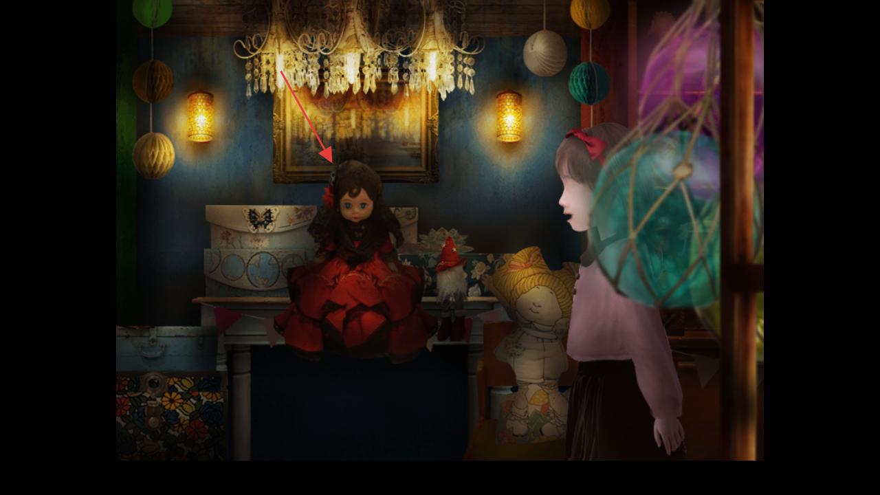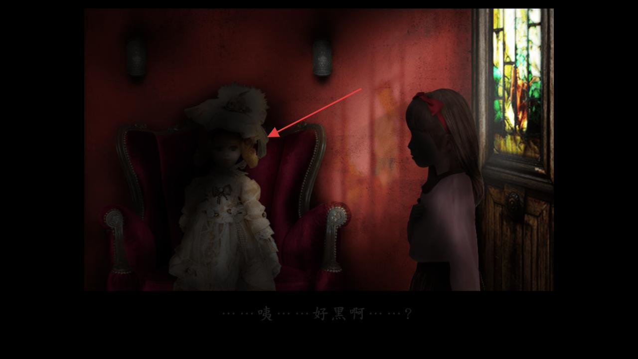 4、繼續深入屋內,看到穿著紅裙的玩偶,與它互動,這或許是解開屋內秘密、推進后續劇情的重要步驟。