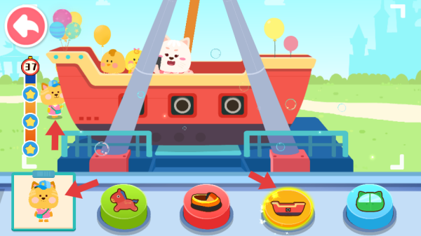 3、進入場景互動如乘船游樂設施,選角色并點擊對應設施按鈕,觸發互動解鎖新內容。