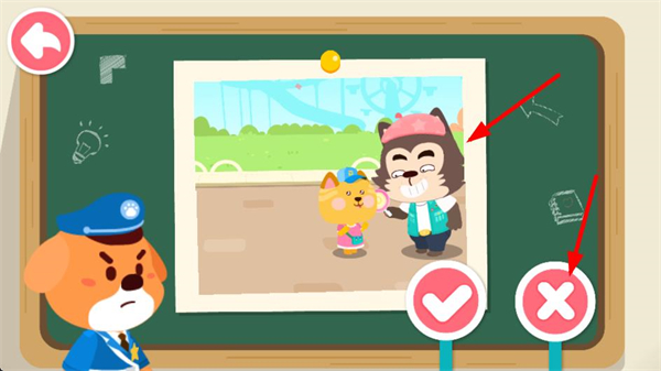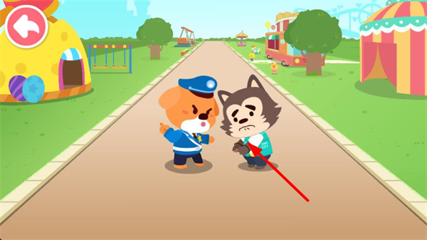2、在樂園路徑里給壞人帶上手銬,觸發互動情節,對壞人進行教育,完成當前場景下的互動任務環節。