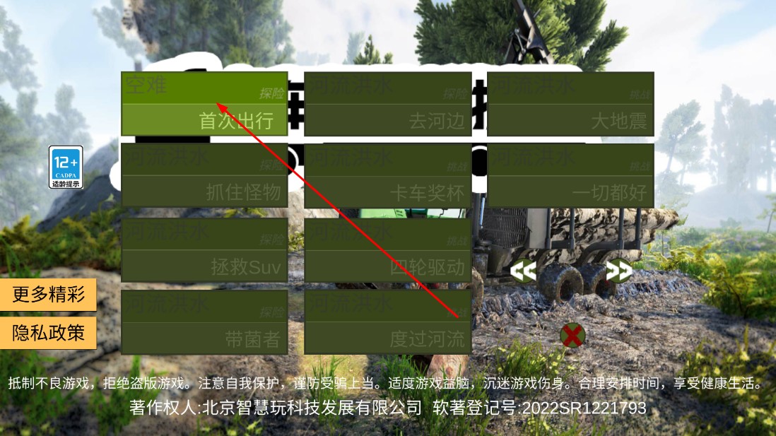 2、在任務選擇界面,有“首次出行”等多個任務選項,選擇“首次出行”任務,可開啟初次卡車駕駛之旅。