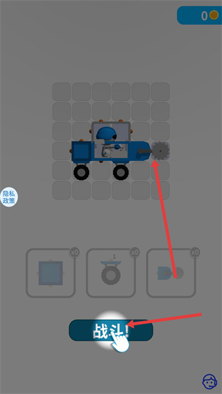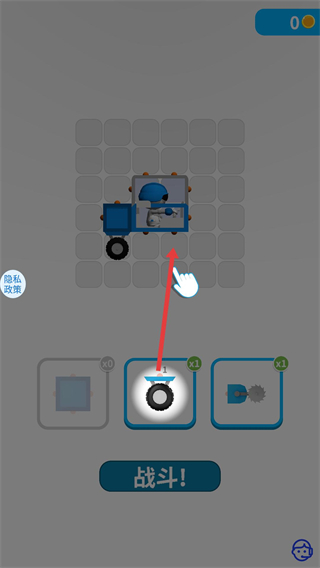 3、再挑選帶有攻擊功能的部件,安裝到戰車上,使戰車擁有攻擊能力,組裝完成后點擊戰斗按鈕,開啟對戰。