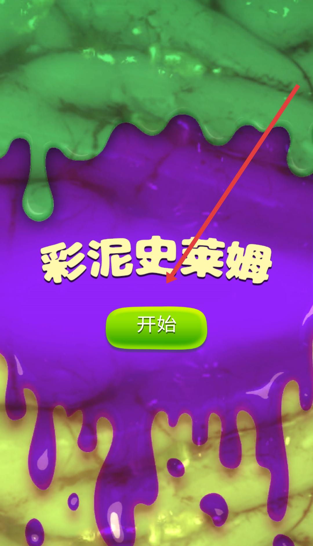 1、進入游戲看到彩泥史萊姆字樣和綠色開始按鈕,點擊開始按鈕,即可開啟游戲。