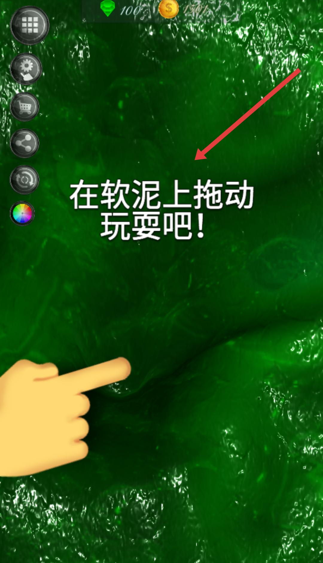 2、游戲開始后畫面中有綠色軟泥,按照提示,用手指在軟泥上拖動,與軟泥進行互動玩耍。