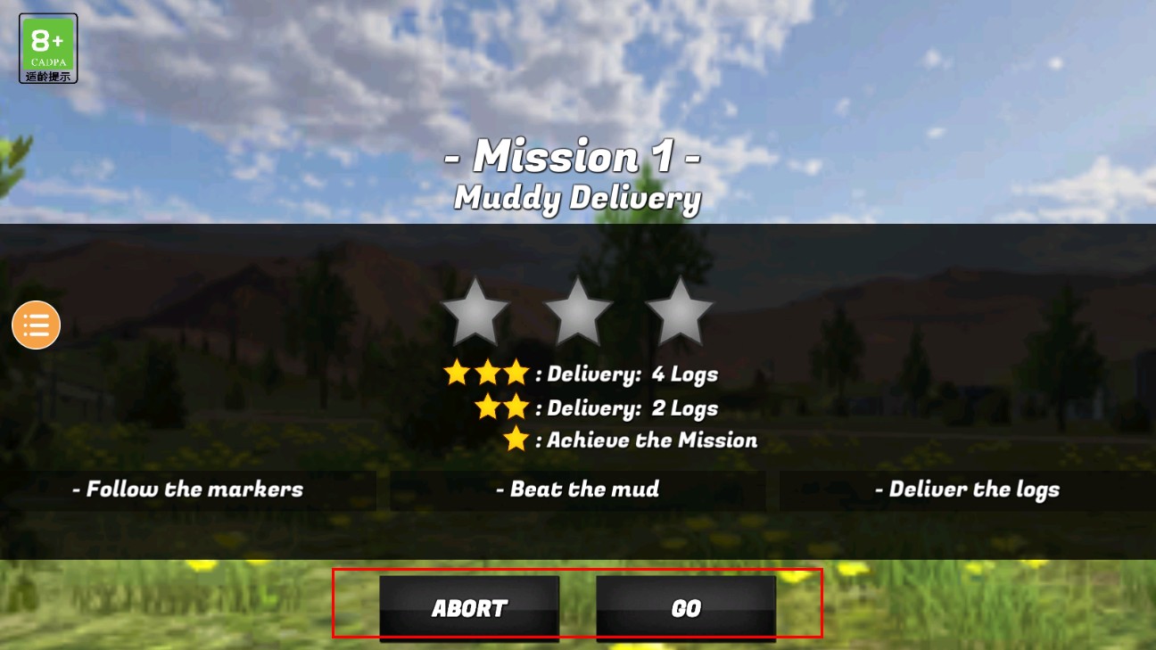 4、完成運輸任務后,會出現任務結算界面,顯示任務星級等信息,可選擇ABORT放棄或GO繼續下一段運輸任務。