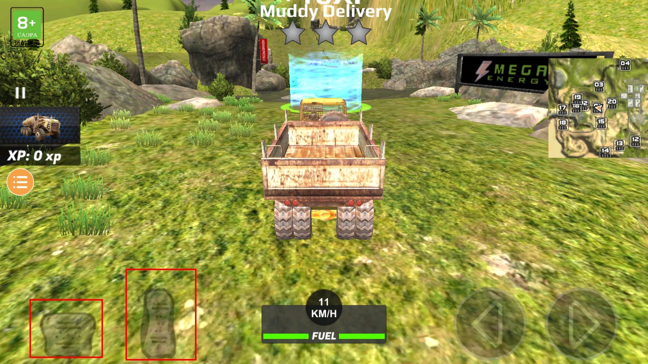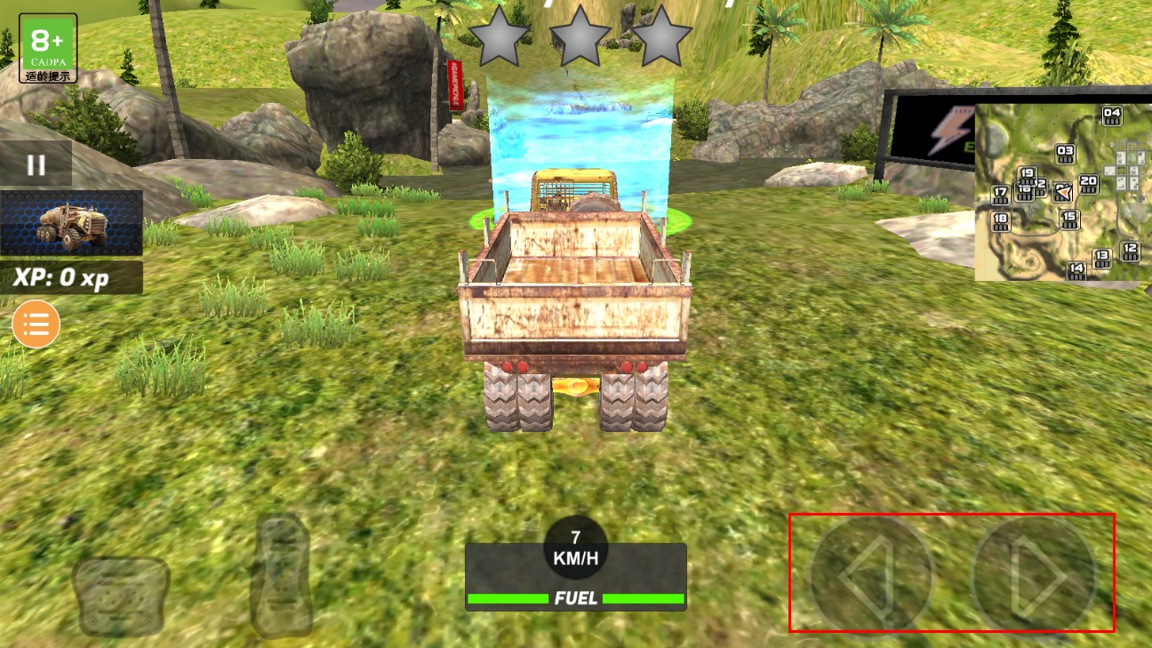 2、進入任務后,點擊左側的油門等控制按鈕,能讓卡車前進,在野外等復雜地形開始運輸行程。