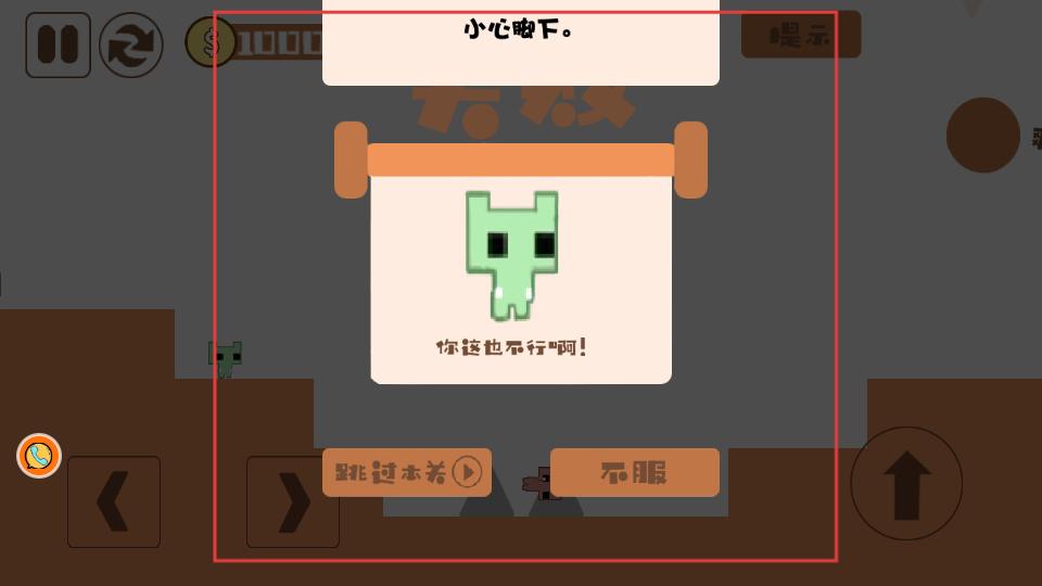 4、若角色碰到危險失敗,會彈出提示,可選擇跳過或者不服,重新挑戰,繼續在關卡中跳躍闖關。