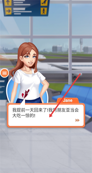 1、機場觸發劇情,跟隨Jane對話了解背景留意文本推進,開啟后續換裝與關卡任務,提前熟悉角色設定為裝扮挑戰做準備。