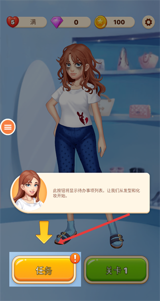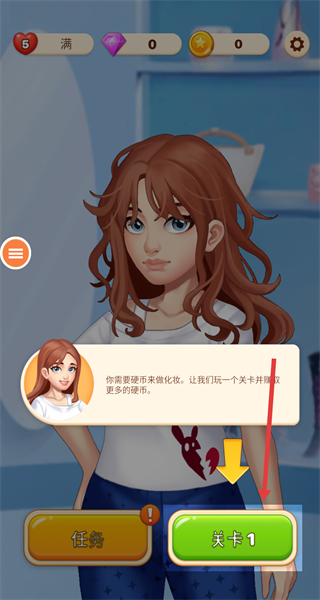 3、完成任務引導后,選擇開啟關卡通過消除玩法獲取金幣,用于購買裝扮道具推進角色形象改造,開啟時尚挑戰。