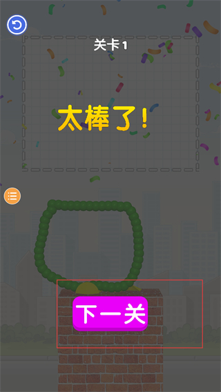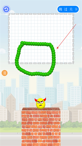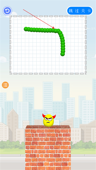 3、繪制好圖形后,等待圖形自然下落,讓其砸向下方磚墻上的蛋形角色成功砸中蛋形角色,就能完成當前關卡的挑戰。