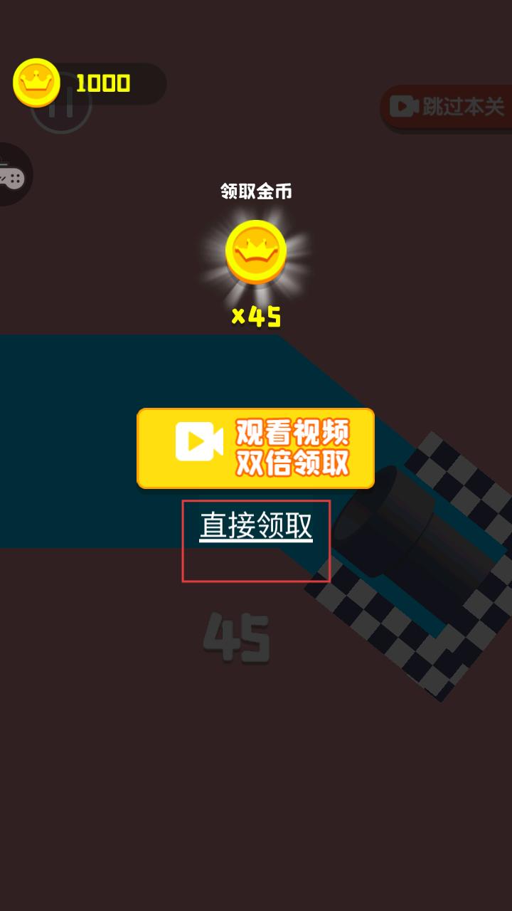 4、成功完成關卡后,會出現領取金幣的界面,可選擇直接領取金幣,收獲游戲獎勵,為后續挑戰積累資源。