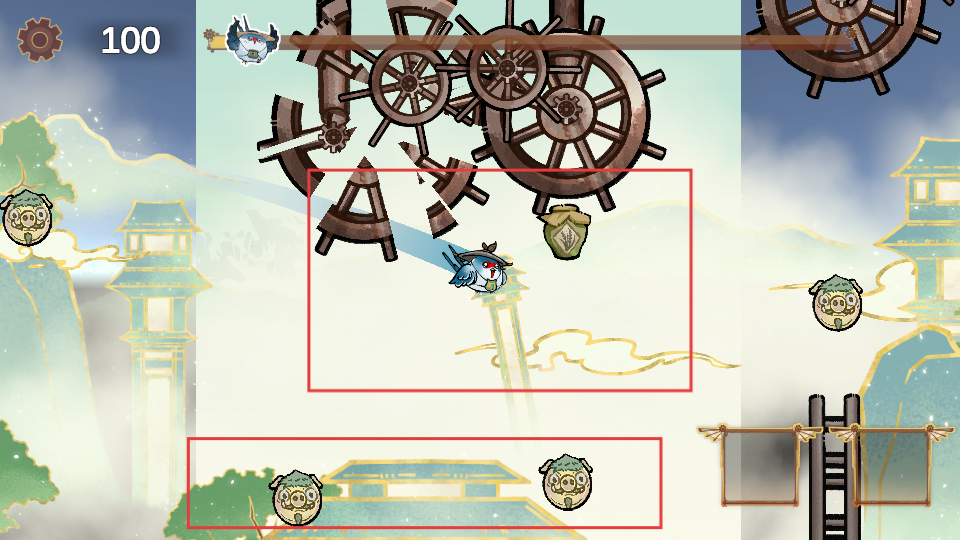 2、在關卡中操控角色飛行,躲避障礙物,同時留意收集物品,利用裝備的特性,讓角色順利在場景中前進。