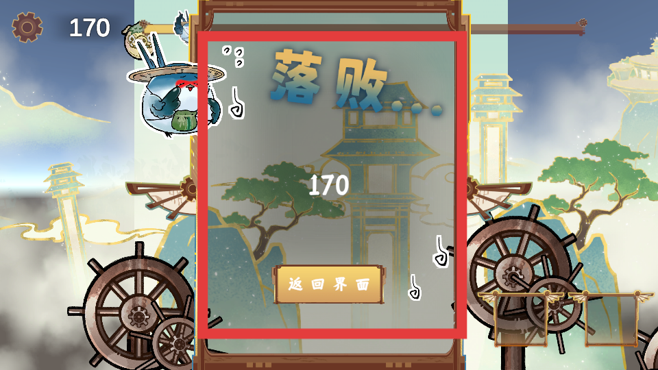 4、若角色飛行失敗,會顯示落敗及當前分數,此時可點擊返回界面,重新選擇裝備,再次挑戰關卡,爭取更好的成績。