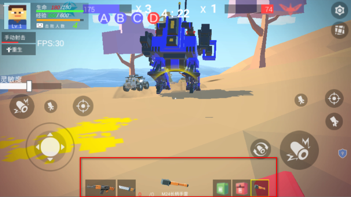 3、下方有武器和道具欄,可切換不同武器,比如從步槍換成手雷,根據戰斗情況選擇合適裝備。
