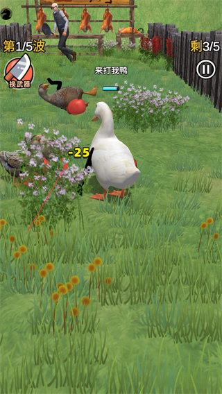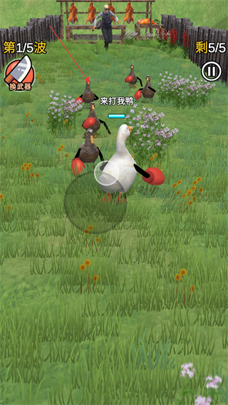 2、游戲中會有一波波的敵人鴨群來襲,操控鴨子與這些敵人鴨群進行戰斗,擊敗它們以推進游戲進程。