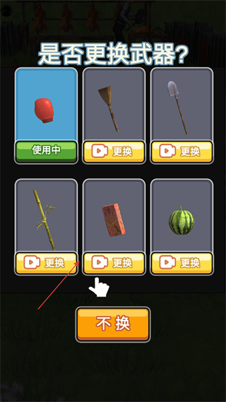 4、在武器選擇界面,可以選擇更換不同的武器,不同的武器有著不同的攻擊效果,可點擊無需看廣告即可獲取。