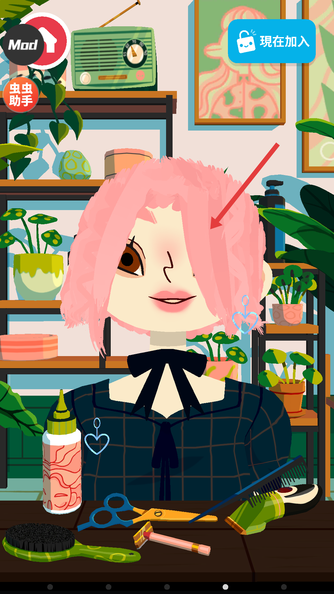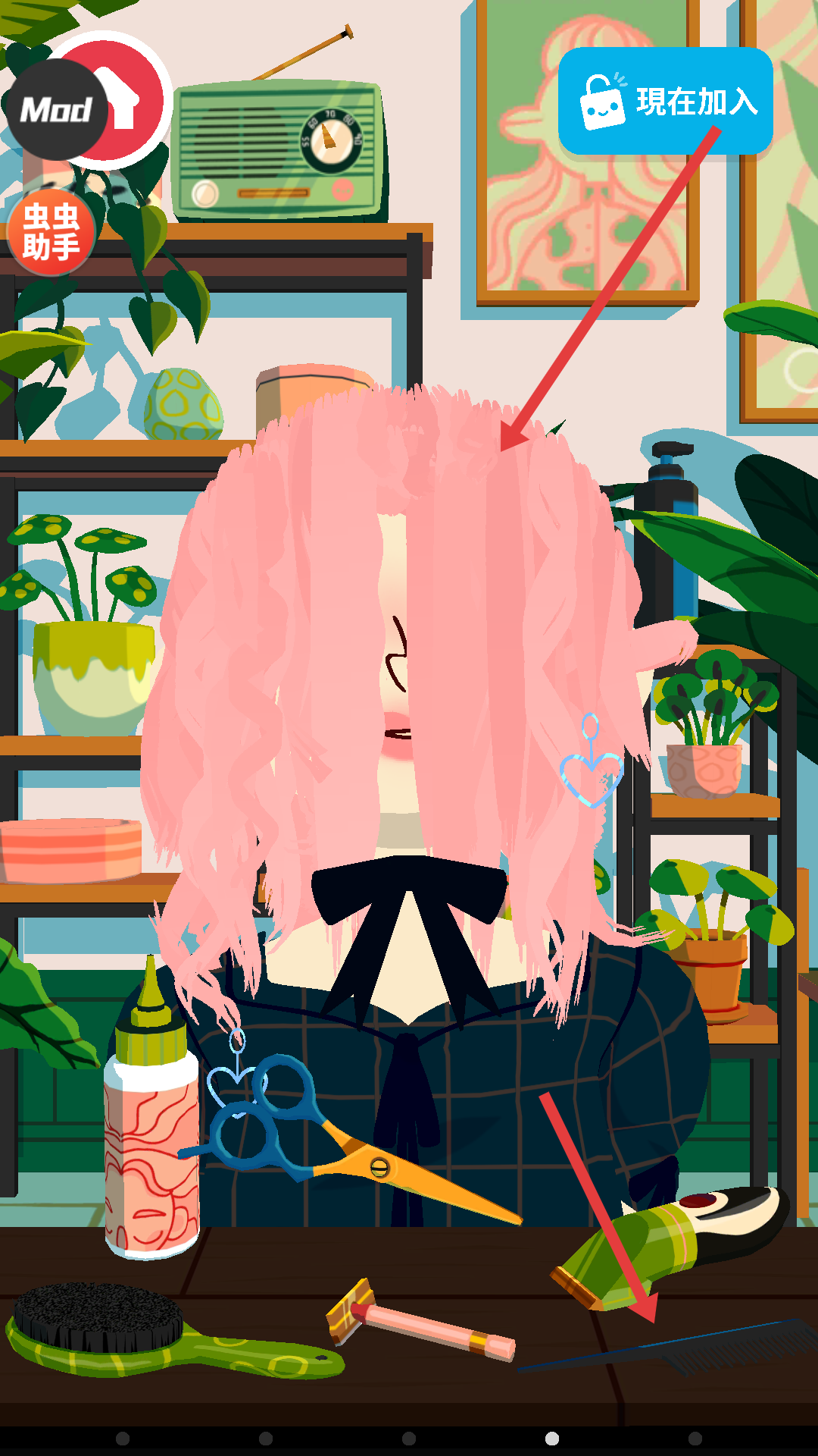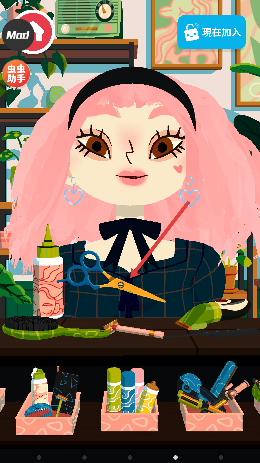 2、在沙龍場景里,選擇剪刀工具,對角色的頭發進行修剪,可根據喜好調整修剪的長度和形狀,打造初步的發型輪廓。