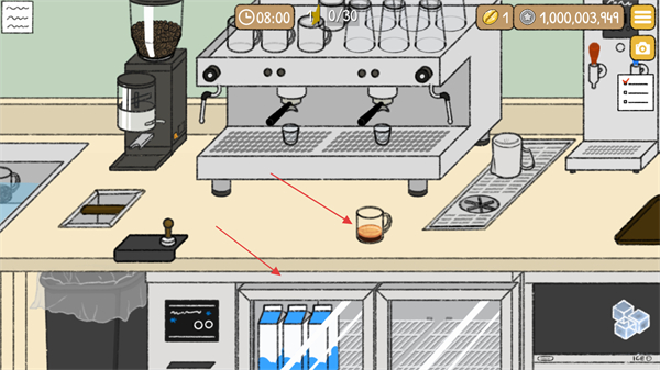 3、玩家制作完咖啡液之后如何需要從冰箱中取出牛奶等原料,用于制作其他類型的咖啡飲品。