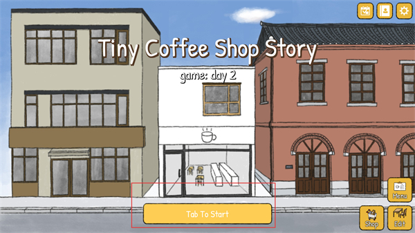 1、玩家下載游戲之后在游戲主界面,點擊Tab To Start按鈕,開啟咖啡店新一天的營業,準備迎接顧客。