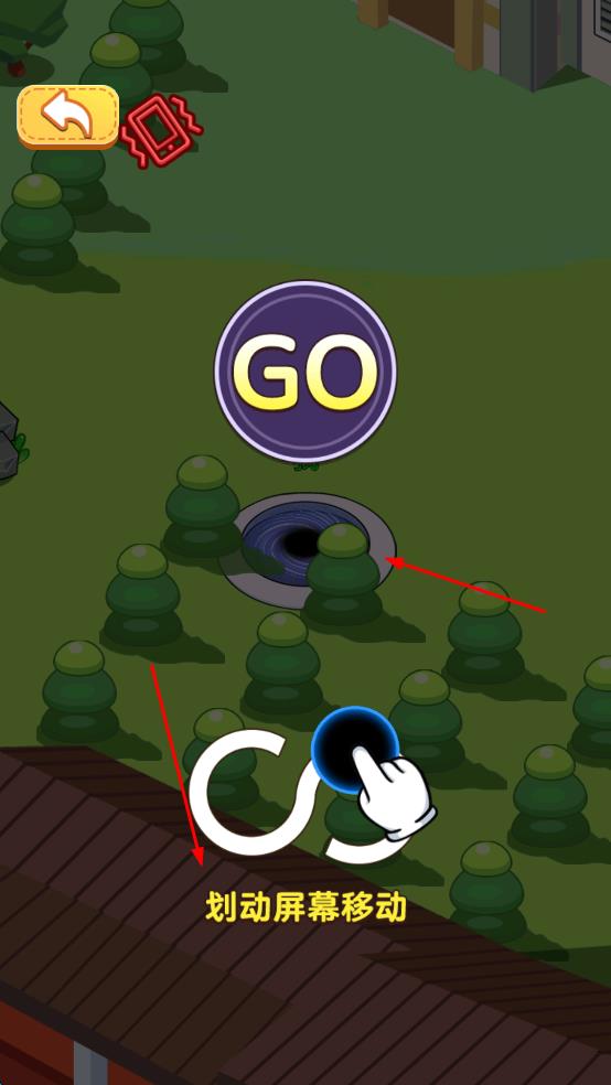 2、開局階段通過劃動屏幕控制角色移動,點擊GO讓角色進入洞口,跟隨引導熟悉操作方式,為后續對戰做準備。