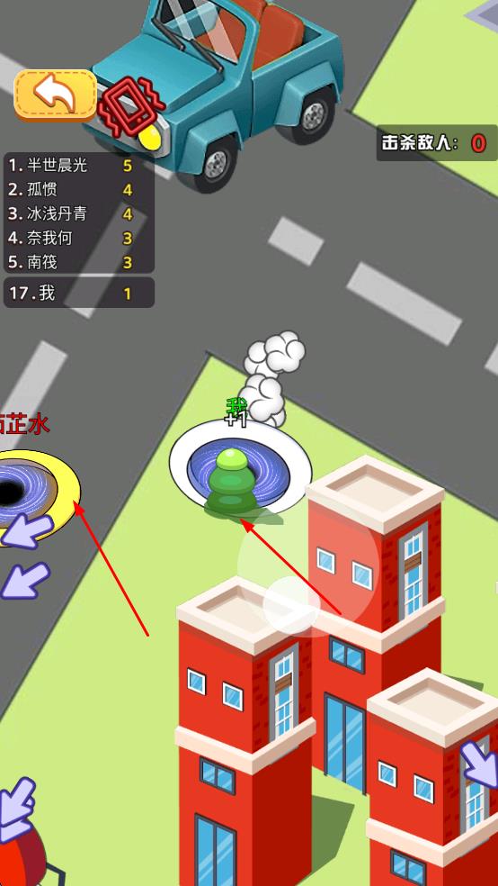 3、對戰時操控黑洞吞噬周圍物體,關注自身排名與擊殺數量,避開敵方黑洞,積極搶占資源以擴大黑洞規模提升能力。