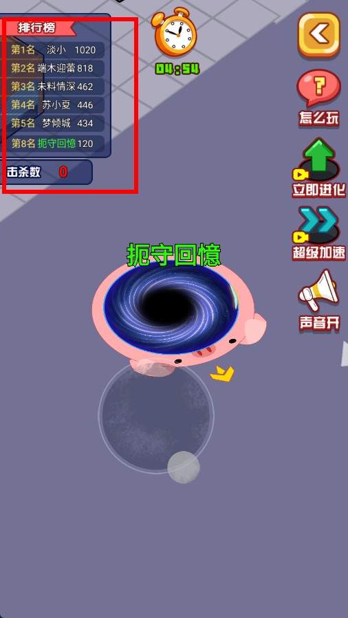 4、游戲過程,左側排行榜會實時顯示玩家的排名情況,可通過觀察排行榜,了解自己與其他玩家的差距,激勵自己提升成績。