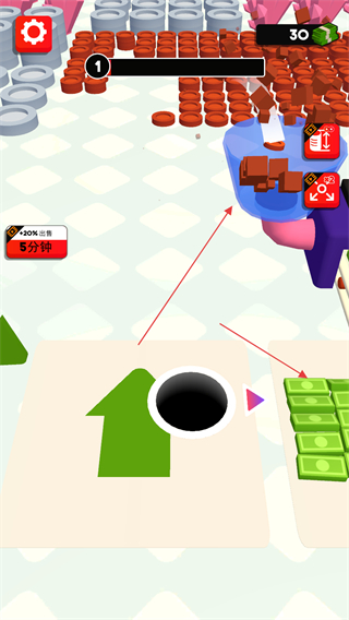 4、玩家吞噬完畢之后點擊移動到綠色的箭頭上,可以將物品轉化成鈔票玩家領取獎勵。