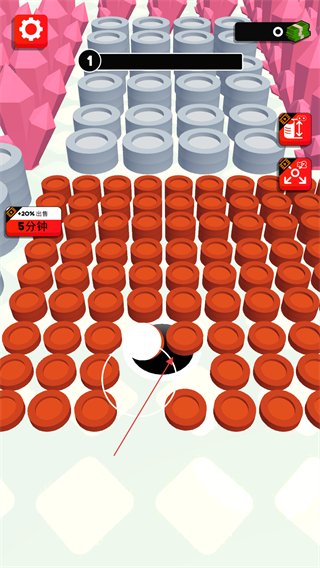 3、游戲中會出現不同類型的物品,除了可吞噬的紅色圓盤,還有其他物品,黑洞吞噬滿了之后就不好吞噬了。