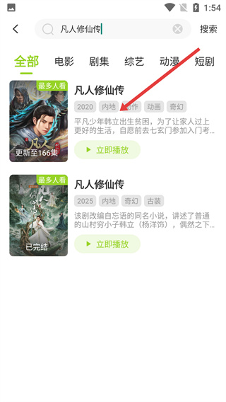 2、搜索結果出來后,瀏覽不同的條目,找到目標內容,點擊該內容條目,進入播放頁面。