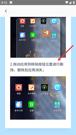 4、若要刪除應用可拖動應用到移除按鈕位置,這樣應用就會被刪除界面也會相應更新。