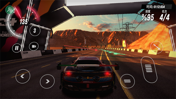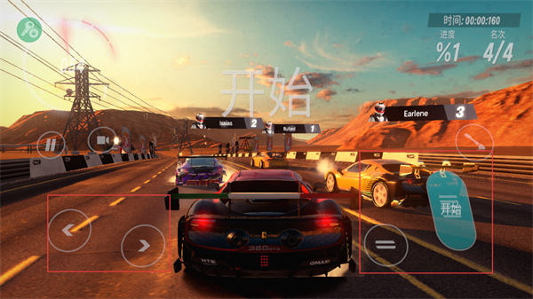 2、利用屏幕左下角的左右方向虛擬按鈕控制賽車轉向,通過屏幕右側的相關按鈕進行加速等操作,注意觀察屏幕上方顯示的時間。