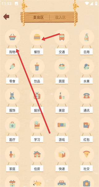 2、在記一筆支出區選購物餐飲等分類,通過精準標記區分消費類型能夠讓賬目的分類更加清晰。