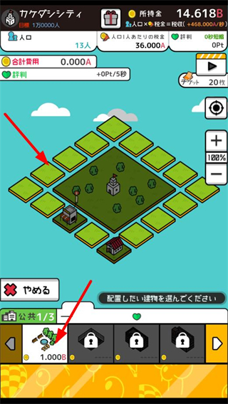 1、游戲初始,可在建筑選擇欄挑選住宅類建筑,根據提示進行操作,為后續人口增長和城市發展奠定基礎,合理選擇建筑是城市建設的第一步。