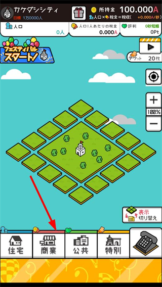 1、選擇商業分類,準備在地圖的空地里建造商業建筑,開啟城市的建設與經營流程,逐步提升城市規模。