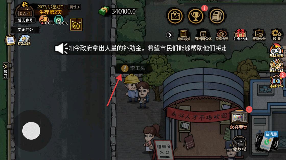 3、在場景中找到帶有感嘆號的李工頭,與其互動,可獲取工作相關信息或任務,為打工做準備。