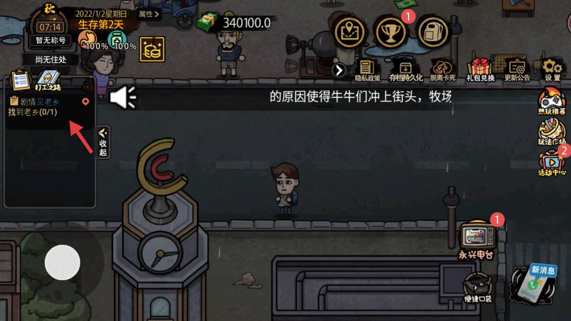 2、進入游戲后,查看打工之路中的劇情見老鄉任務,按提示尋找老鄉,推進劇情發展。