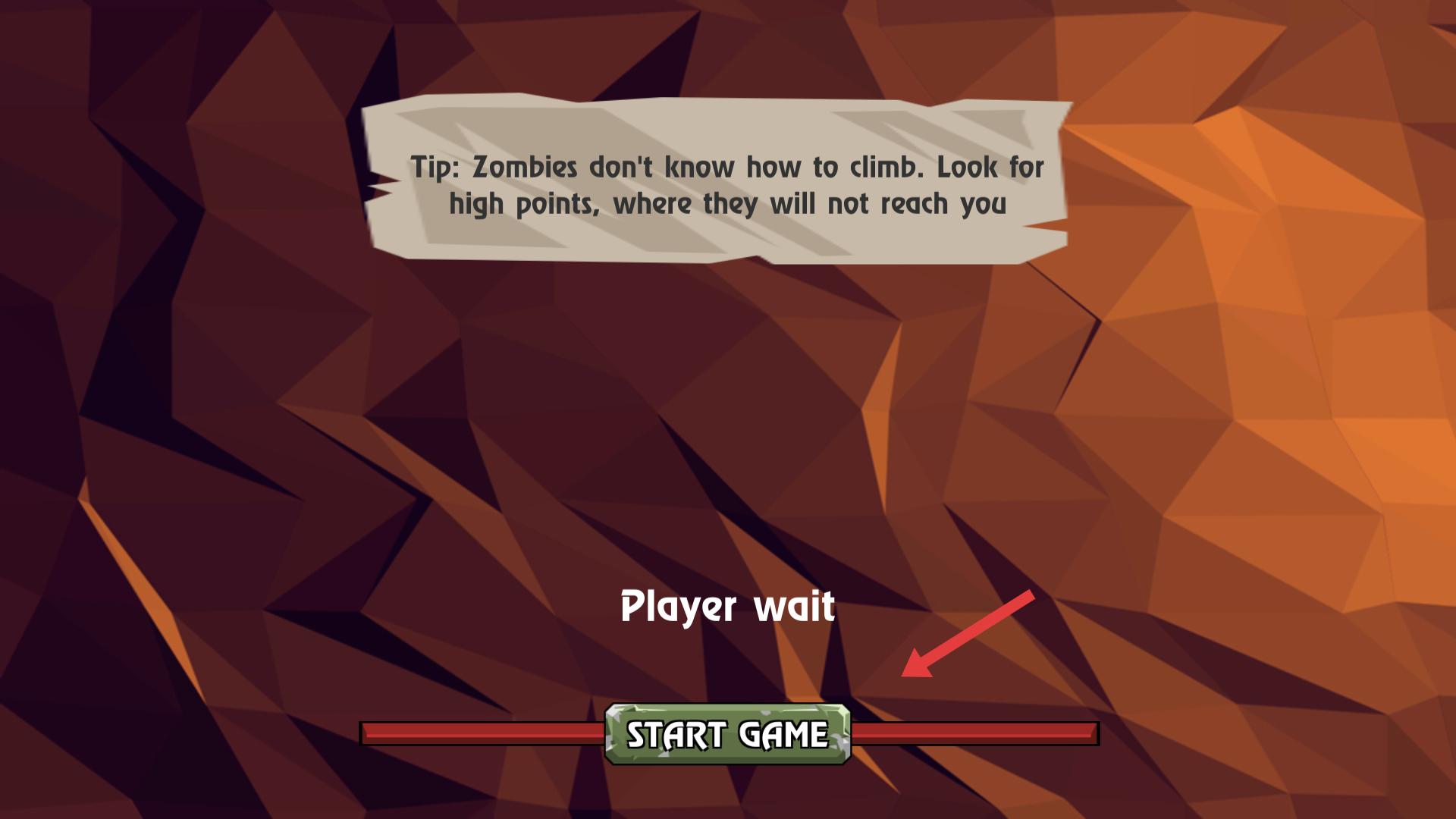 1、游戲開始前有提示,僵尸不會攀爬,要尋找高點躲避,然后點擊START GAME進入游戲,開啟僵尸生存挑戰。