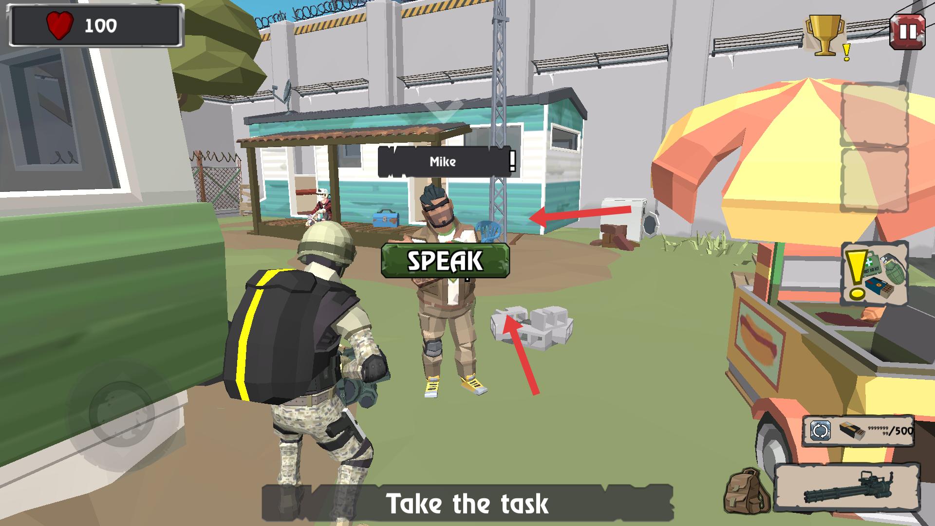 2、在營地能與名為Mike的角色互動,點擊SPEAK可接取任務,下方還有Take the task的提示,準備開啟任務冒險。