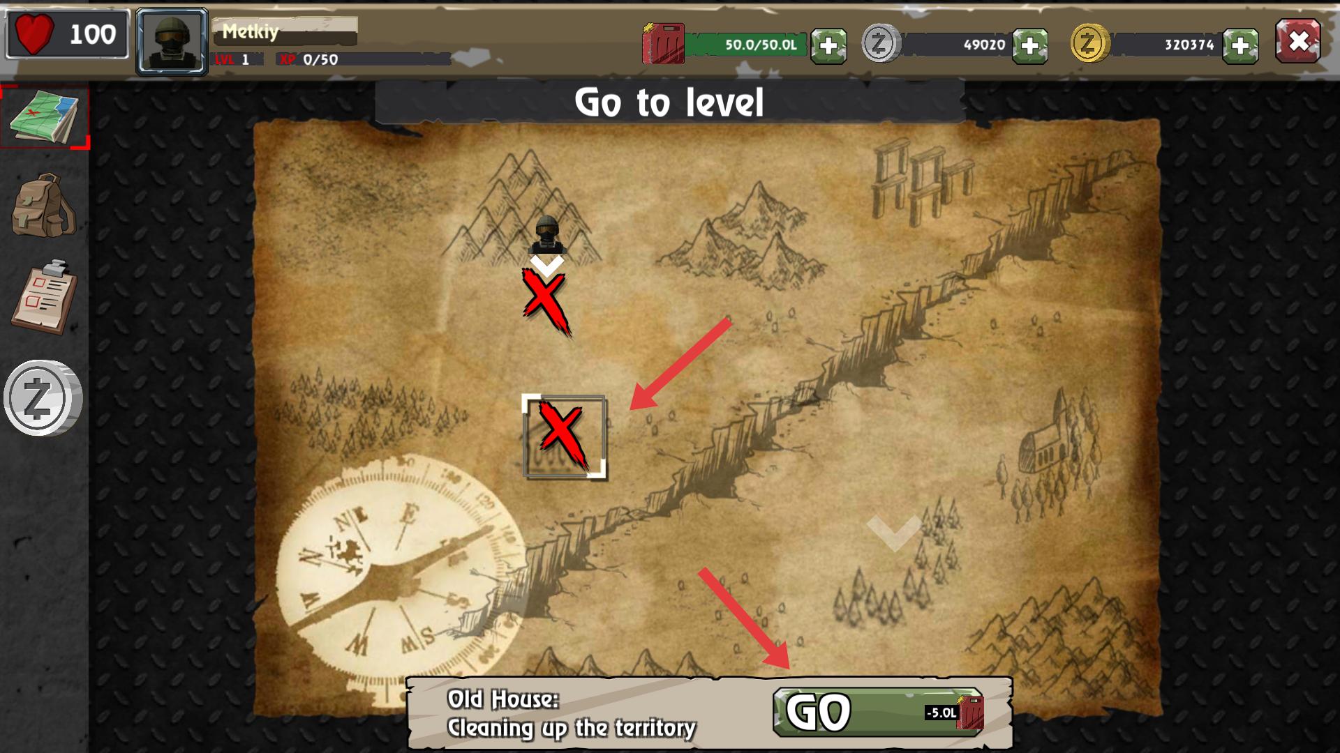 3、通過地圖界面,能選擇要前往的關卡,比如Old House,點擊GO就能前往該區域,開始清理領地等任務。