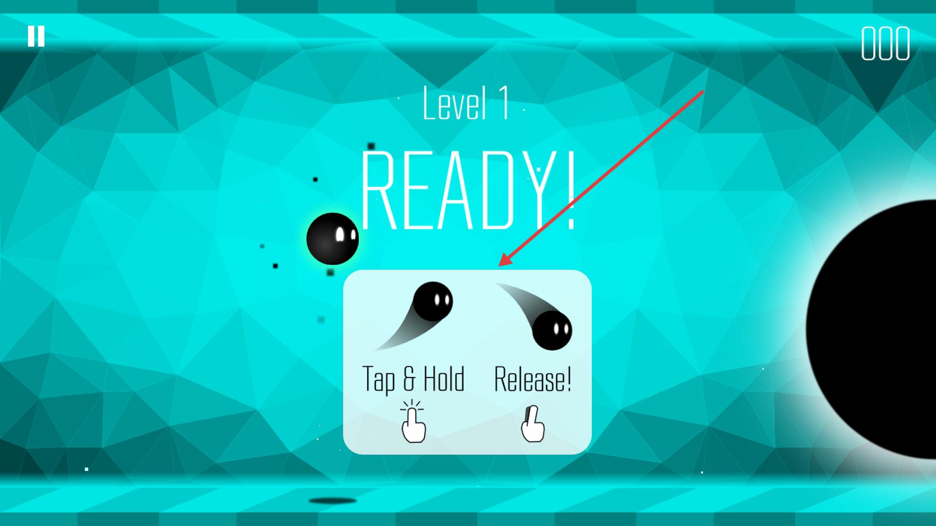 2、要注意屏幕提示的操作方法,通過點擊并按住、釋放等操作,控制小球的移動軌跡,躲避障礙物。