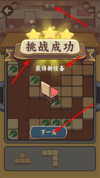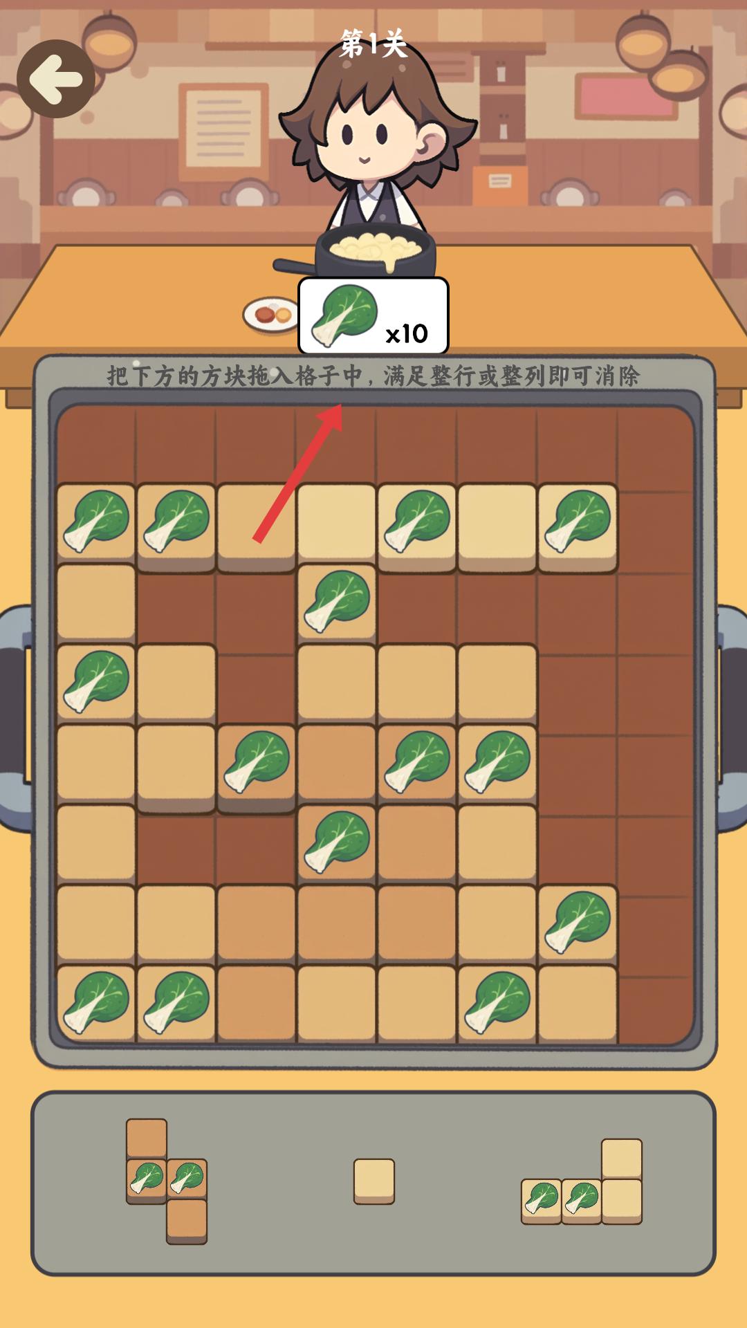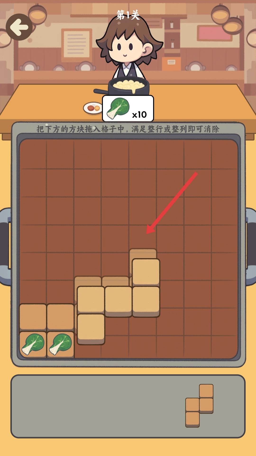 2、進入關卡后,按照提示把下方方塊拖入格子,目標是讓格子滿足整行或整列,這樣就能消除,推進游戲進程。