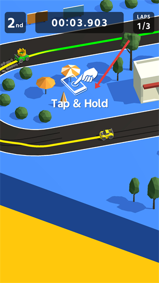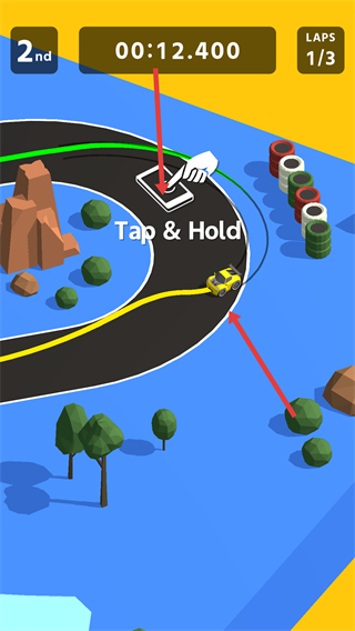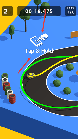 2、在彎道等路段,持續點擊拖住,調整賽車行駛軌跡,順利過彎,保持競速節奏不被打亂。