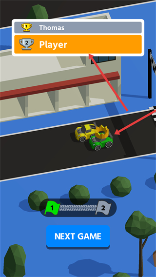 4、沖過終點后,會顯示比賽排名等信息,若想繼續,點擊下一關,開啟下一場賽車競技。