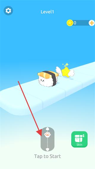 1、進入壽司主題關卡界面,找到下方TaptoStart按鈕,點擊該按鈕讓壽司角色開始在道路上移動。